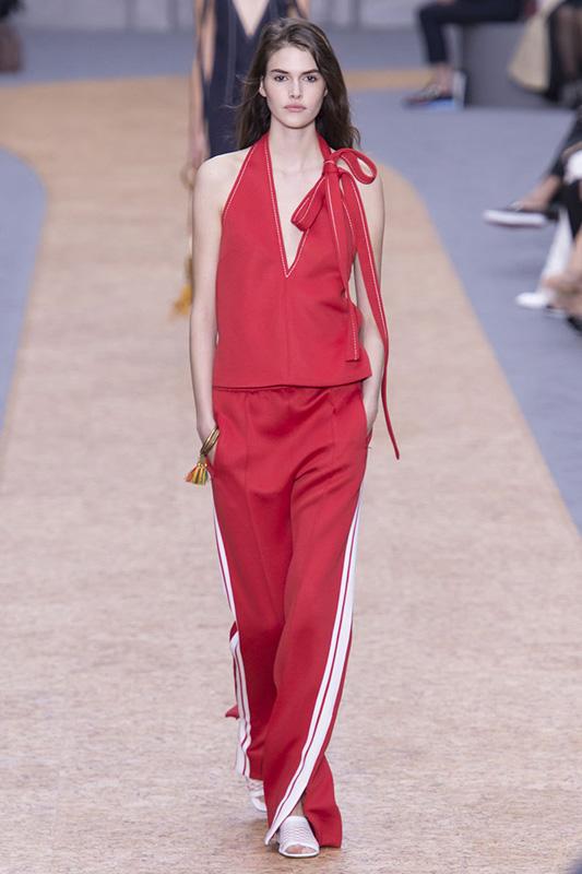 秀场街拍红毯上不知何时悄悄刮起了一股运动彩条阔腿裤的风。时尚品牌Chloé 更是带来了振奋人心的消息:运动裤的黄金时代降临了!Chloé品牌的2016年春夏时装展中,模特儿穿着宽松舒适的运动裤徐徐走出。