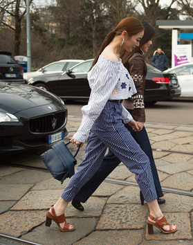 米兰是缤纷印花的天下,各种春天的Look让人自然而然的察觉到盎然春意,印花单品在米兰是必备的,或许是浪漫的花朵印花,可以是跳跃的条纹几何图案印花,总之,没点春天的味道穿在身上,可不是一个称职的“花瓶”。