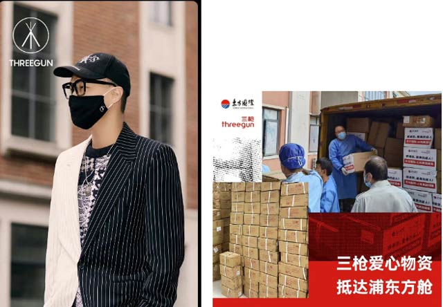 此外,作为上海本土企业,继 2020 年调转“枪头”紧急生产口罩之后,在此轮上海疫情中,三枪也再度快速响应,支援抗疫,开足马力赶制医用防护服、民用防护服、口罩、隔离衣、隔离帽、隔离鞋套等防疫物资,成为上海本地防疫物资保供担当。三枪组织了 100多名员工,按照防疫要求集中隔离在三枪园区内,其中公司 8 名高管中也有 3 人留守园区。自 3 月疫情发生以来,三枪集团在尽力保证原有业务的同时,更是发动全员开展团购业务,全力支援社会各类群体及个人。累计对接 16 个区,500 多个社区街道、居村、企事业单位,全力应对实体店铺的冲击。