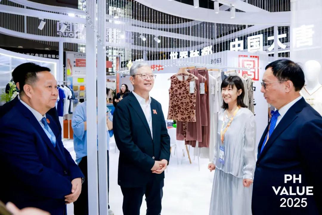 开幕当日,中国纺织工业联合会会长孙瑞哲,原会长杜钰洲,原副会长许坤元,中国工程院院士、东华大学教授俞建勇,中国工程院院士、武汉纺织大学党委书记徐卫林,中国纺联会领导夏令敏、陈伟康、徐迎新、陈大鹏、李陵申、端小平、杨兆华、阎岩、梁鹏程,原副会长张延恺,专家咨询委员会委员曹学军,国家发展改革委节约资源和保护环境司原二级巡视员杨尚宝,工业和信息化部消费品工业司纺织处副处长吴桐,法兰克福展览(香港)有限公司董事总经理温婷等领导嘉宾,以及中国纺联各部门、各专业协会、各成员单位负责人参观了本届联展。